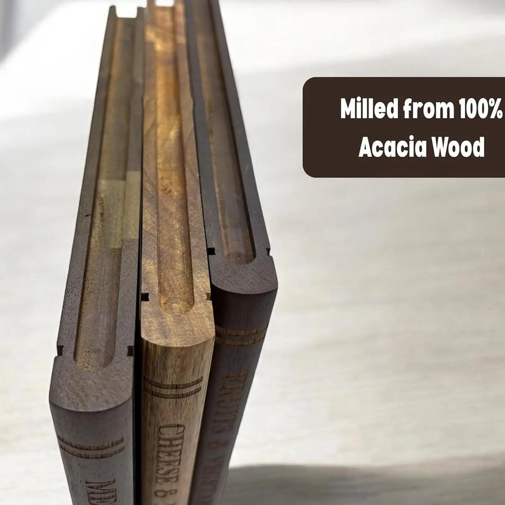 Each board is crafted from high quality acacia wood. Known for its durability,strength and beautiful natural grain.
